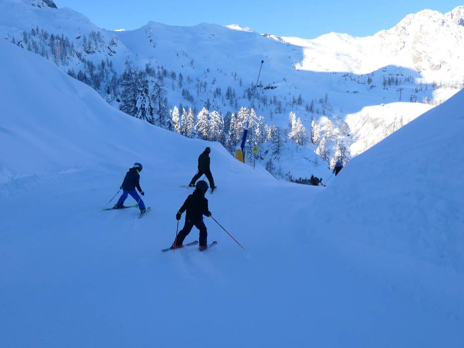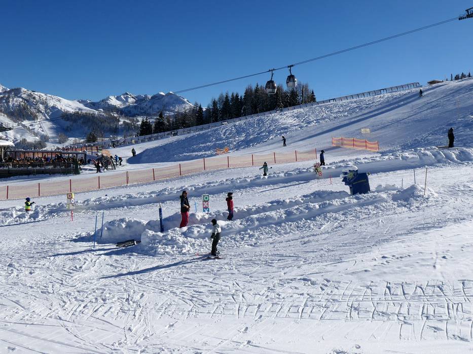 The Nassfeld ski resort is very well suited for families. There are many family-friendly offers available. The ski resort features several children's areas run by ski schools and practice slopes. The adventure slopes "The Wave" and "The Snake" provide fun for the whole family.
