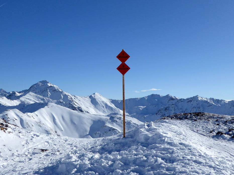 General note: Always mind the avalanche warnings and barriers, please. Never ski into a closed and unsecured area.