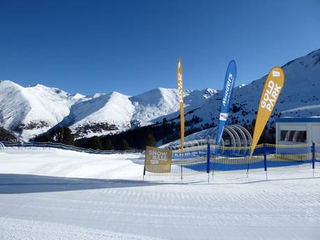 The Goldpark Nauders encompasses the entire area around the new Goldseebahn near the central Bergkastel station. The new Goldseepiste with funslope elements, the Snow-Base Bergkastel with covered conveyor belts, the Nauderixland with ski kindergarten and children's restaurant, and the Flow-Parks Nauders are all part of it. Here, families with children will find a wide range of attractive experiences.