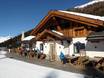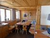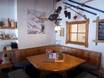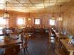Despite the new construction, the rustic and traditional hut character has been preserved. The serviced restaurant features two floors and also boasts a spacious sun terrace. The cozy Zirbenstüberl offers a retreat. The unique atmosphere invites guests not only for a short lunch break. In addition, there is the option to take off your ski boots and relax in house slippers. A dedicated room with a ski boot heater is available for this purpose.