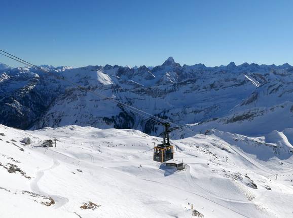 The Nebelhorn is the highest ski area in the Allgäu. The 400-peak panoramic view from the summit station is breathtaking. With almost 1,400 meters of elevation difference, the ski area boasts an impressive vertical drop. At 7.5 km in length, the Nebelhorn features the longest snow-covered valley run in Germany. In terms of the number of piste kilometers, it is considered one of the smaller to medium-sized ski areas.