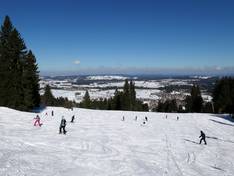 The cozy hut spoils guests with Allgäu specialties. The large sun terrace and the comfortable dining rooms invite you to linger. The Enzianstube is also open during night skiing.