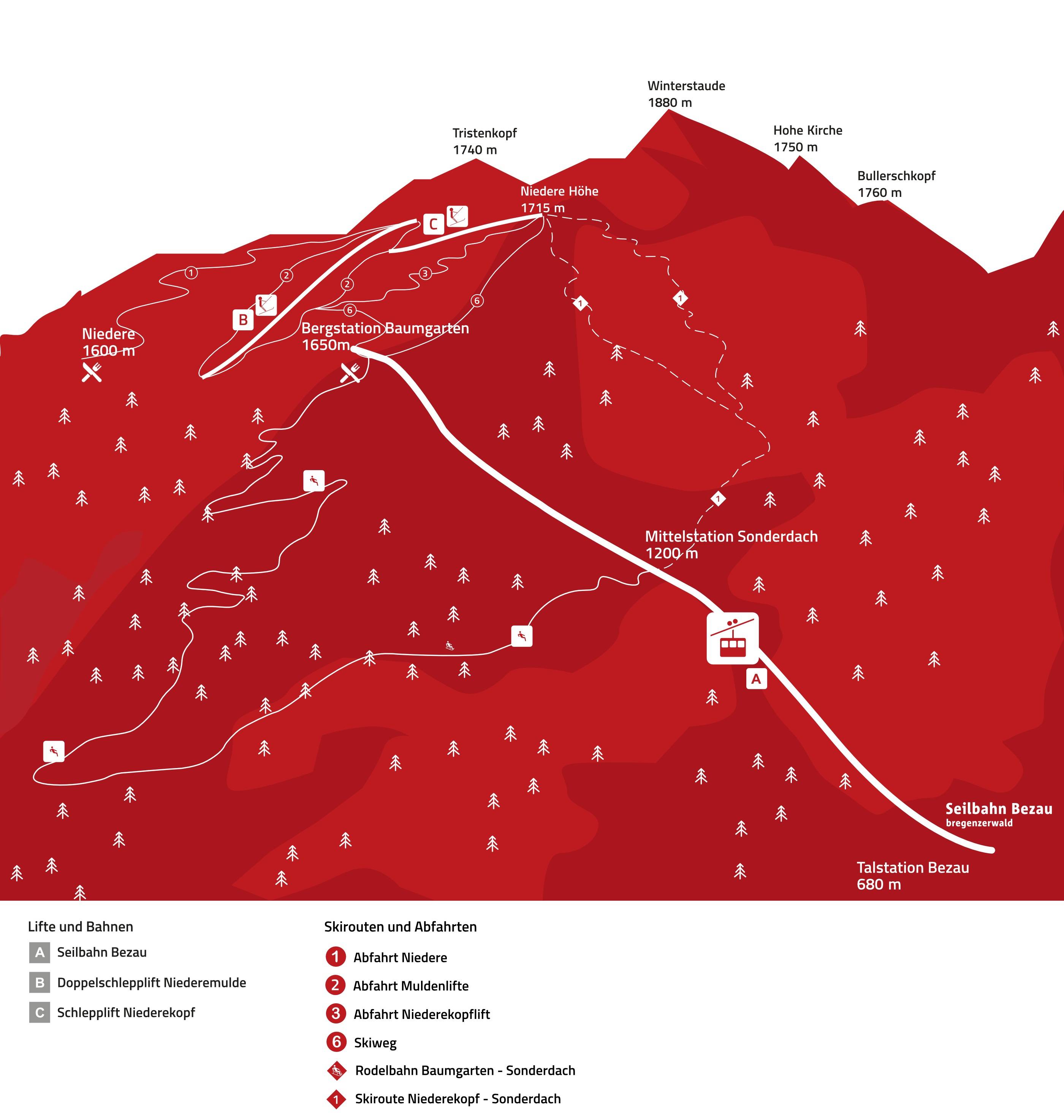 Trail map Skigebiet Niedere Season 2025/2026