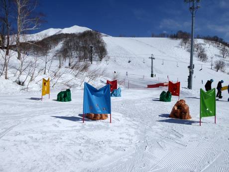 The children's area is located right at the valley station in Hanazono Resort. Several covered conveyor belts take the little ones up the hill. The children's area is supervised by the local ski school. A tubing run completes the offerings.