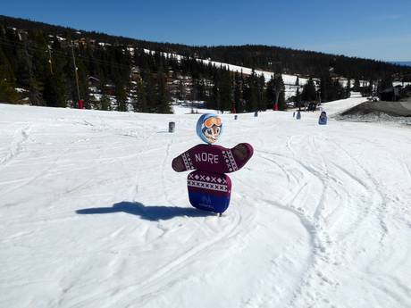 The children's area is located right next to Norefjell Ski & Spa. A platter lift serves the easy slope with fun figures and obstacles.