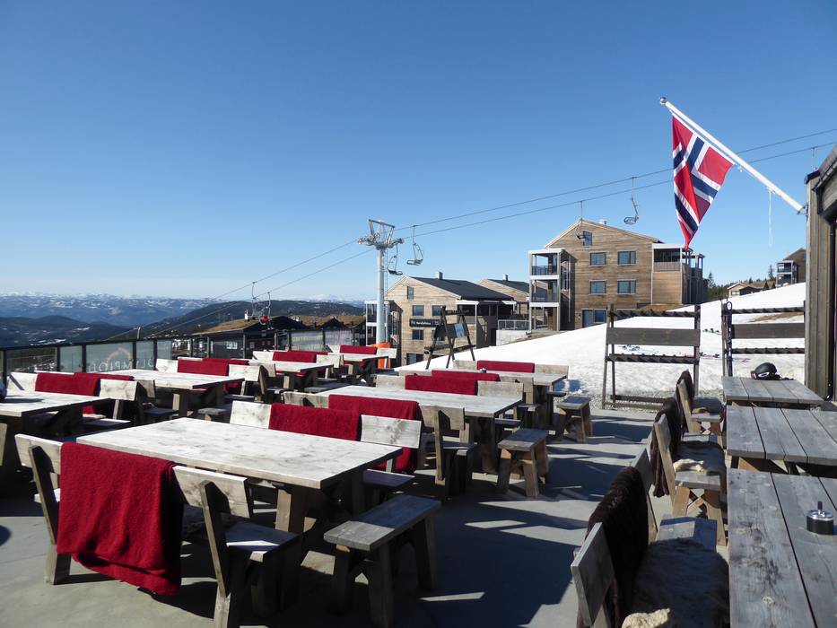 In Norefjell, there are good restaurants and cabins spread throughout the ski area. From the sun terraces, you often have a great view of the mountains and Lake Krøderen.