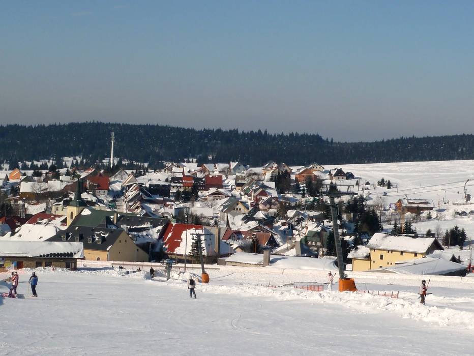 The Novako ski resort is located directly in the town of Boží Dar (Gottesgab) in the Ore Mountains. The slopes and facilities are designed for beginners and children. In addition to alpine skiing and snowboarding, there are several cross-country trails for Nordic skiing in the vicinity of the Novako winter sports area.