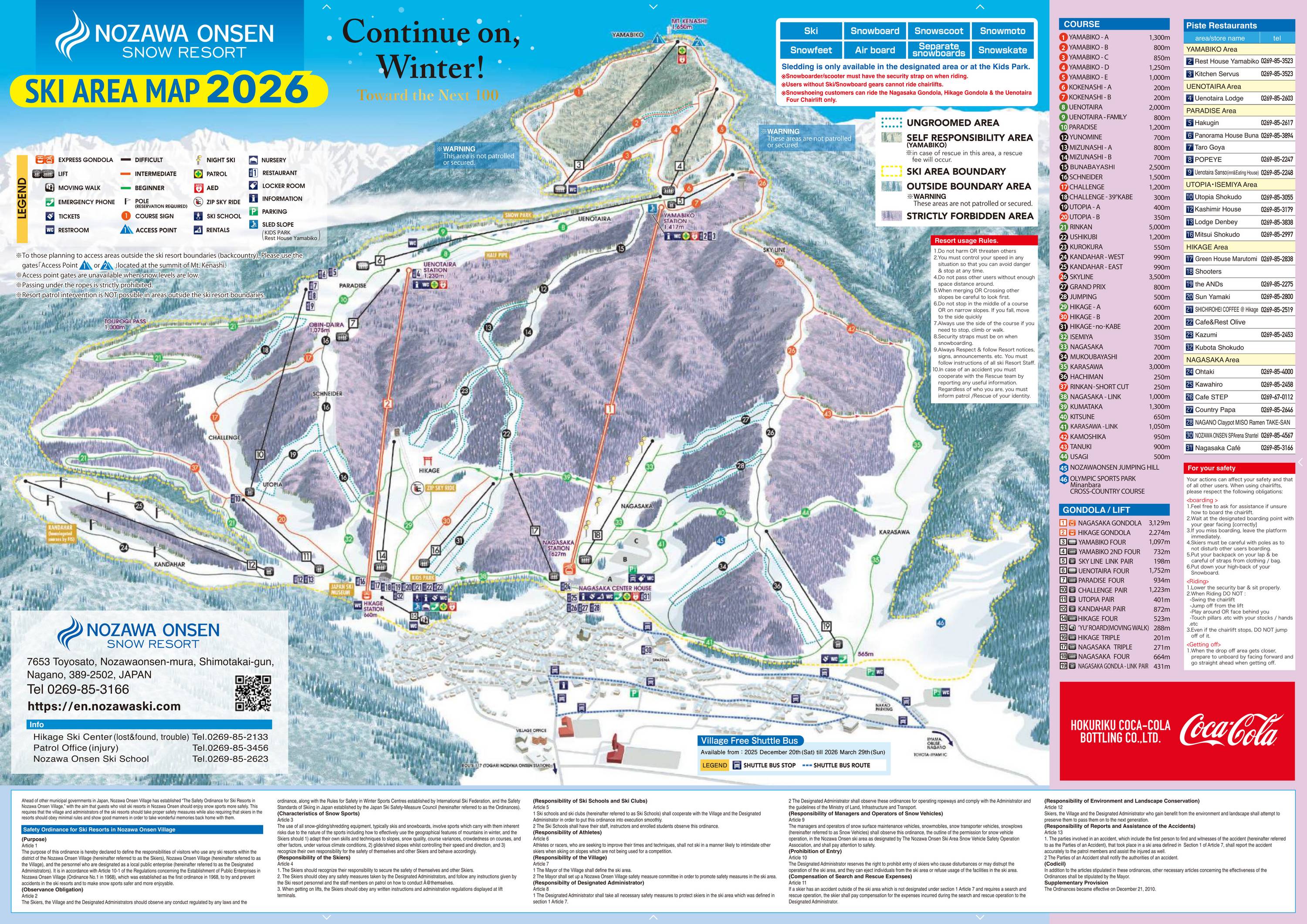 Trail map Nozawa Onsen Season 2025/2026
