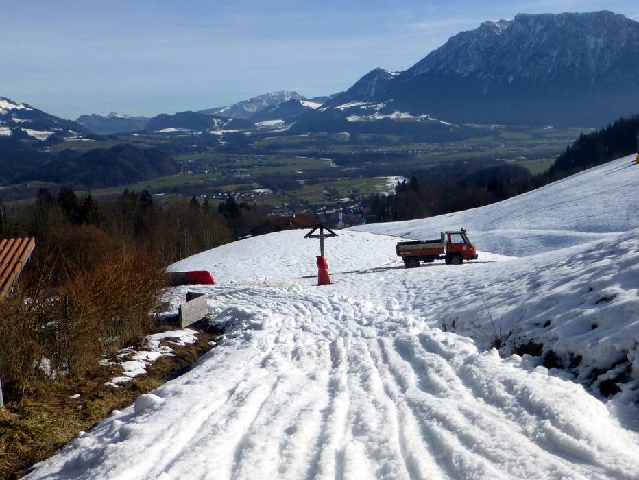 The start of the attractive 3 km long winter toboggan run is located just behind the mountain inn Hocheck, only 200 meters from the top station of the four-seater chairlift. The toboggan run is groomed daily with a special piste machine, making it safe for families and children to use. Toboggans can be rented at the valley station. Numerous barriers ensure the necessary safety. Here, tobogganing fun is guaranteed both during the day and in the evening!