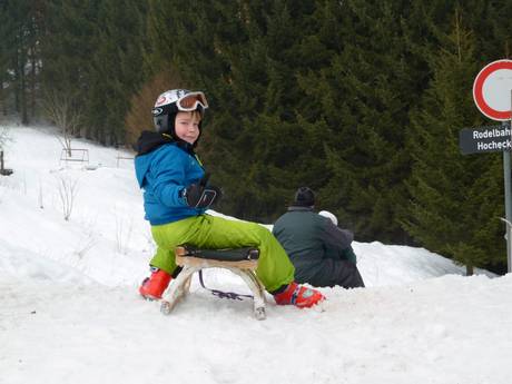 The ski resort is very family-friendly, not least due to its extremely family-friendly pricing policy. There is childcare provided by the Skischule Hocheck with its own children's area located above the valley station. A practice area with a rope lift and conveyor belt is also situated above the valley station. The first TÜV-certified, 3 km long, illuminated winter toboggan run is also very popular with families.
