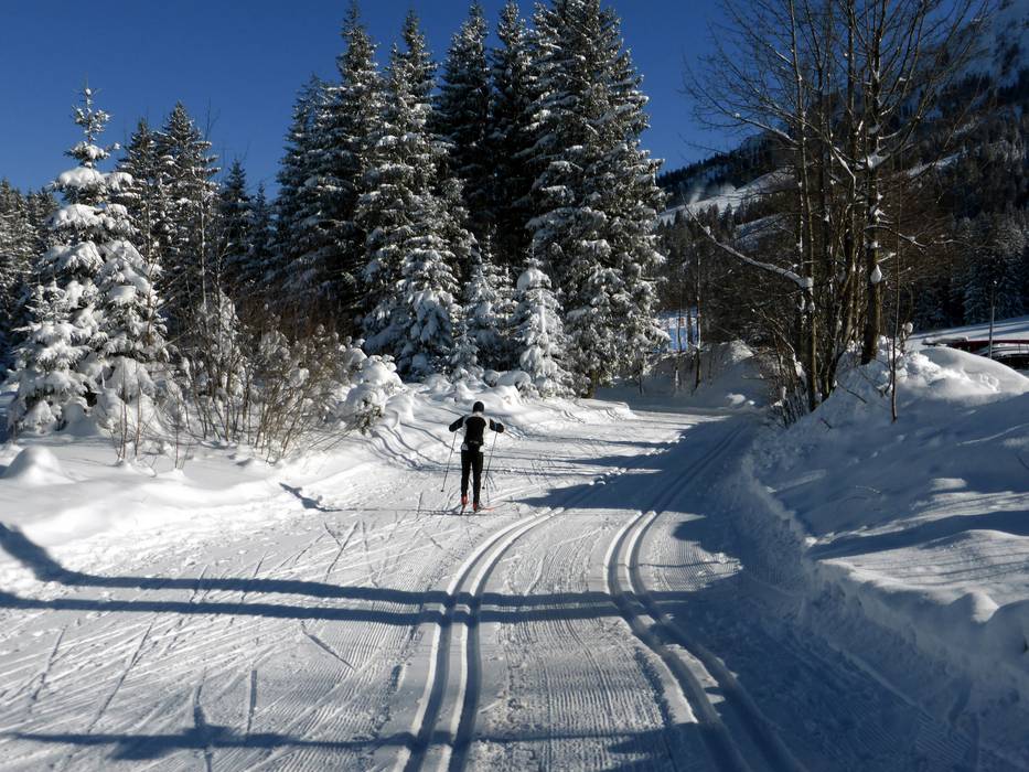 On the Ski-Trail Allgäu-Tirol, double-track and skating cross-country trails lead from Oberjoch to Austria into the Tannheimer Tal and to Jungholz. Those who don't want to be slowed down by darkness will find a 1.5 km floodlit trail at the Hornbahn in Bad Hindelang.