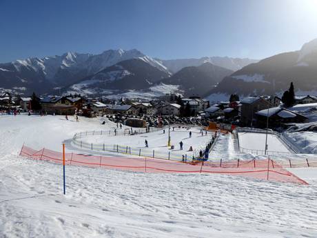 At the valley station in Vella, the Lumnezia ski school operates a lovely children's area with a conveyor belt. In addition, there is a public practice slope with its own lift available for the whole family.