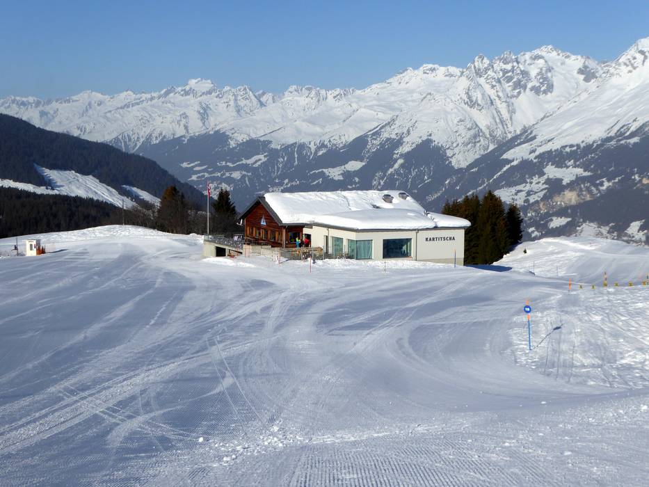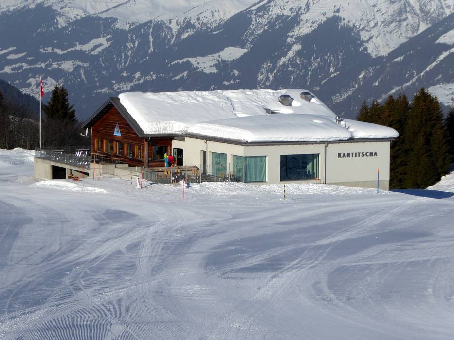 The modern mountain restaurant Kartitscha offers a self-service area and a serviced section with a large sun terrace. Swiss specialties and various steaks are served here.