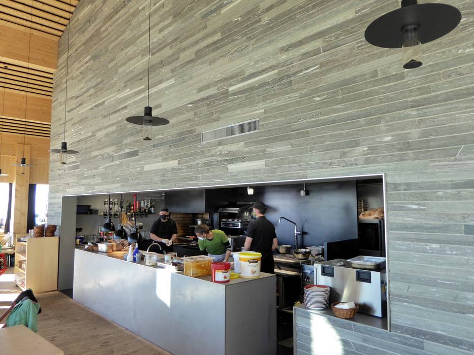 The Gipfelrestaurant Sezner is built entirely from wood and offers a fantastic view of the stunning mountain scenery. The Gipfelburger and classics from the charcoal grill are highly recommended. In good weather, the large sun terrace is especially inviting.