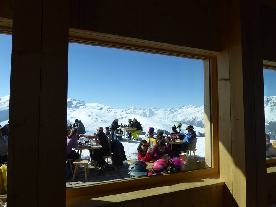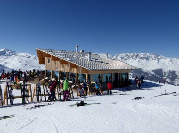 The cozy and very sunny hut offers excellent food. Around 80 free deck chairs are available. The hut is also recommended for après-ski.