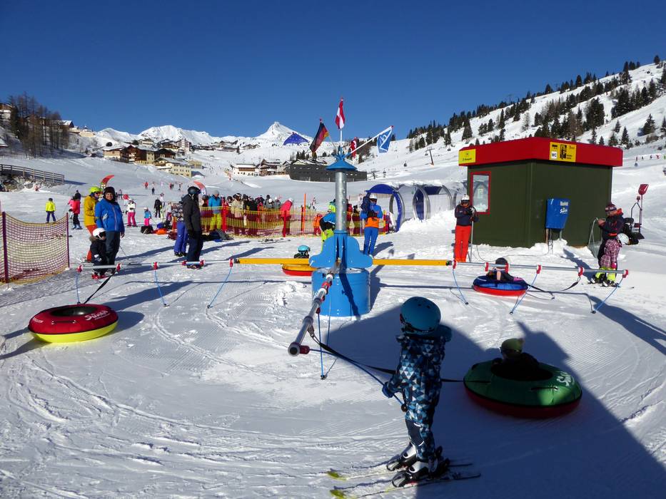 The CSA ski school offers a practice and fun area for beginner and intermediate children in its Snowland, located in the heart of Obertauern. A conveyor belt, snow carousel, and rope lift are available.