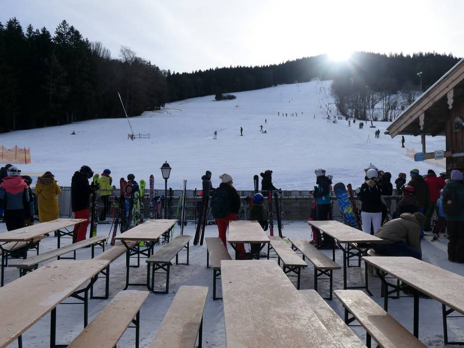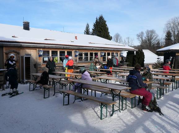 The cozy Oedbergalm offers hot meals all day and serves hearty Bavarian specialties in a self-service setting. From the sun terrace, you can enjoy a great view of the activity on the piste.