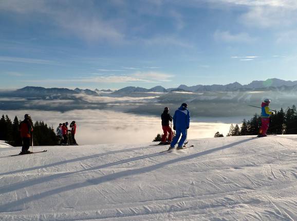 The Ofterschwang/Gunzesried ski area features modern gondolas and chairlifts that transport guests from the idyllic villages directly to the winter sports area on the Ofterschwanger Horn. While advanced skiers can challenge themselves on the World Cup run to Ofterschwang, families and beginners