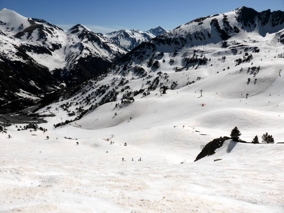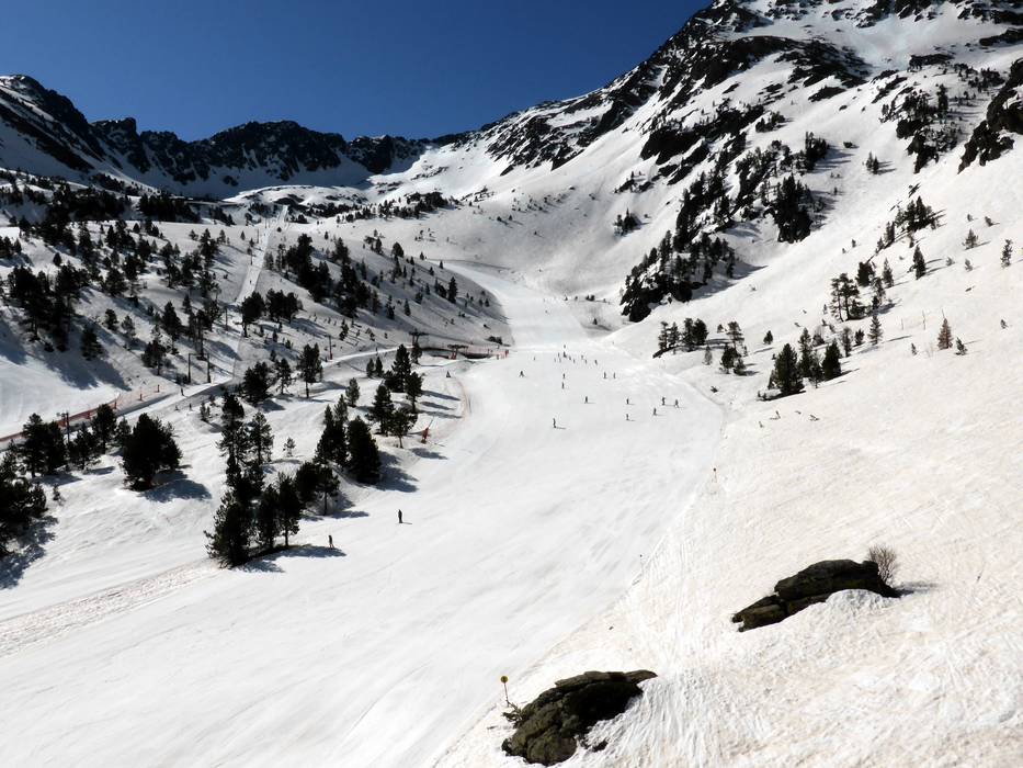 All valley runs lead to L'Hortell, the lowest point in the ski area at 1,940 m. The parking lots are also located here.