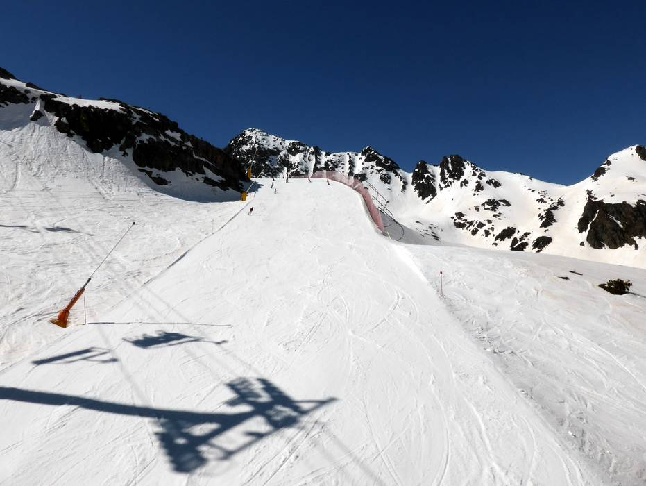 The very easy, green slope Megaverda leads from Les Portelles 2552 m to L'Hortell 1940 m. It is perfect for beginners.