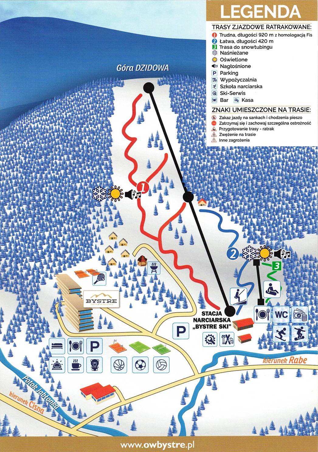 Bystre (0.9 km), Baligród (3.1 km) Towns/villages at the ski resort