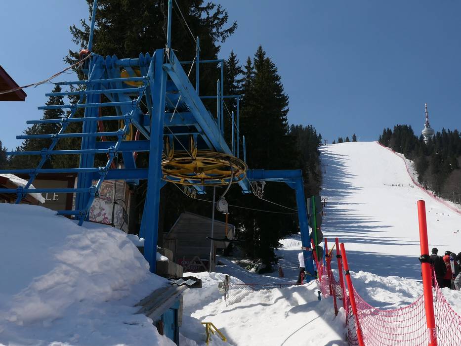 T-bar lift/platter/button lift at the ski resort Pamporovo