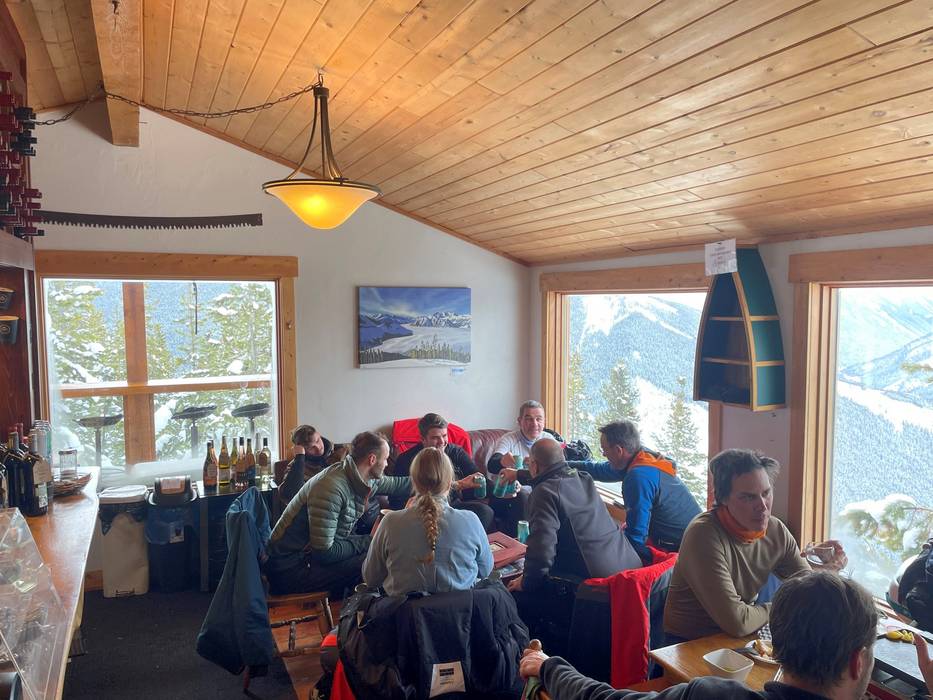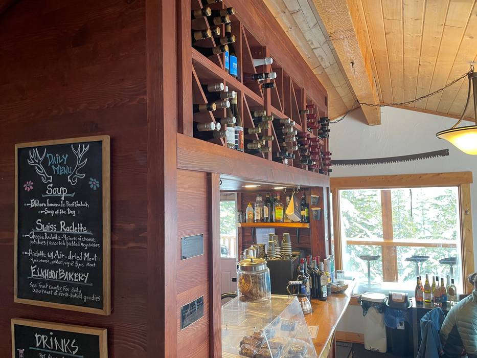The rustic Elkhorn Cabin offers a magnificent view of the mountains and tempts guests with Swiss cheese fondue and raclette. There is a special selection of wines, craft beers from British Columbia, and homemade mulled wine. Reservations are highly recommended.