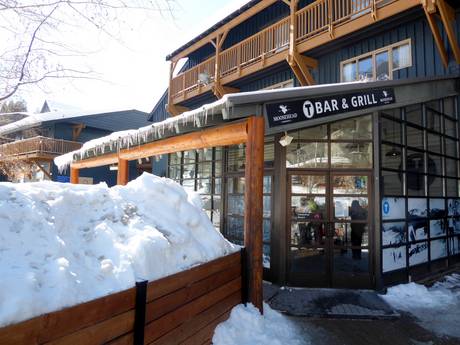 At Panorama Mountain Village, there are a variety of restaurants and bars to stop by. At the very top of the mountain at 2,365 m, you can visit the rustic Summit Hut. In addition, the ski area also features the Elkhorn Cabin with Swiss fondue and raclette, as well as the Hut One.