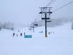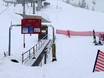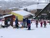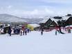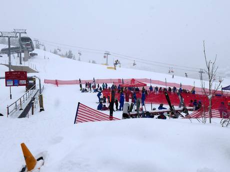 At the mountain station of the Red Pine Gondola, there is a ski school area with a magic carpet.