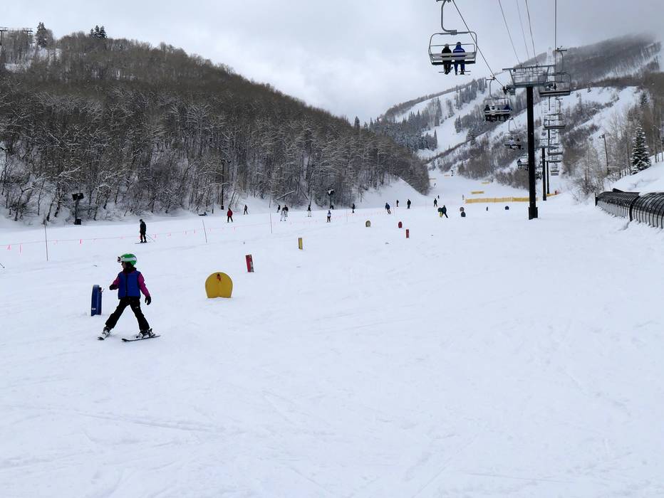 At the covered conveyor belt Mule Train, just above Park City Mountain Village, children can practice perfectly.