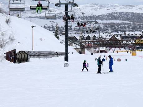 Park City is very well suited for families. The ski school offers numerous ski courses for children from the age of 3. The ski instructors are specially trained to work with children. There are several practice areas available. Many slopes in the ski area are very suitable for the whole family. In Canyons Village, there is childcare available for non-skiing children.