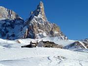 The Rollpass with its distinctive rocky… Cimon - 4pers. Chairlift (fixed-grip) Paradiso - 4pers. Chairlift (fixed-grip) Castellazzo - 3pers. Chairlift (fixed-grip) Ferrari - 2pers. Chairlift (fixed-grip) Tapis roulant Baita Segantini - People mover Getting to the Rolle Pass Slope map with information at Rolle Pass Slope signage at Rolle Pass The staff assists with boarding at the platter… Cross-country trails at Rolle Pass Cross-country trails at Rolle Pass Photo Passo Rolle (Rolle Pass)