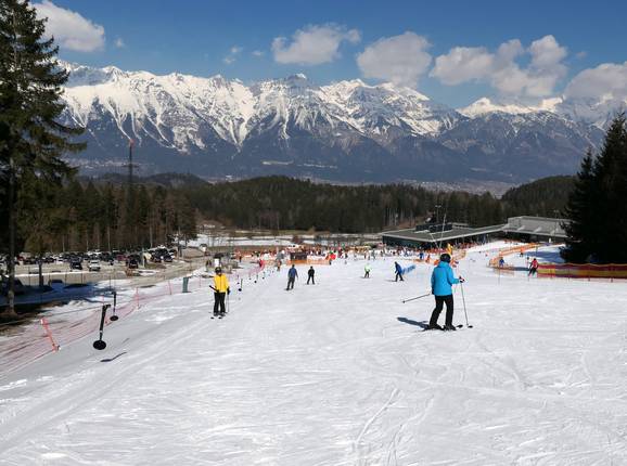 Beginners will find a large practice area with a conveyor belt and rope lift at the valley station of the Patscherkofelbahn. Even without ski school, a separate ski pass for the practice lifts can be purchased. Advanced beginners can cruise down the easy family run from the mountain station to the mid-station and practice at the drag lifts. The family run down to the valley is of intermediate difficulty.