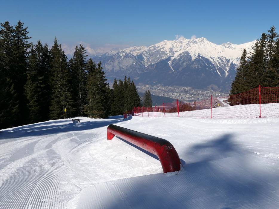 On the sunny slopes above Innsbruck, easy boxes and tubes as well as many challenging rail and tube lines, including some smaller jumps, await visitors. The snowpark is divided into several areas. The centerpiece is located at the T-bar lift "Übungslift".