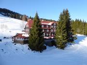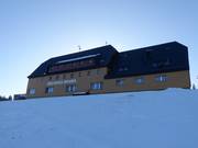 Catering in the Pec pod Sněžkou ski area ranges from cozy mountain huts to modern self-service restaurants right on the slopes. Visitors can enjoy both traditional Czech dishes and quick snacks here. In good weather, outdoor seating is usually available. Small kiosks complete the offering.