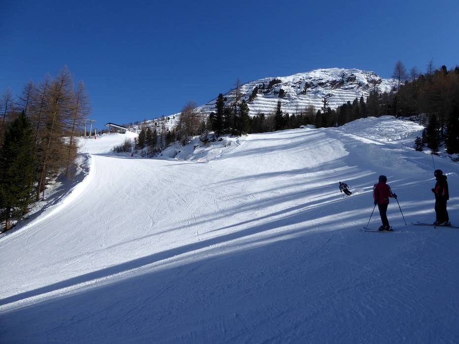 Basically, the Karjoch piste is of medium difficulty. There is the option to take a turn onto a difficult section, the so-called Obere Böden Kletterwand with a 75% gradient. This piste, which is usually not groomed (freeride), is only recommended for experienced and skilled skiers or snowboarders.