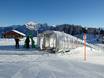 The small children's area with a magic carpet is located at the mountain station of the Wangs-Furt gondola lift. It is usually in operation during the holiday periods. Advanced children from the ski school practice at the adjacent Furt practice lift.
