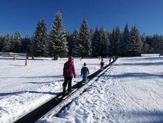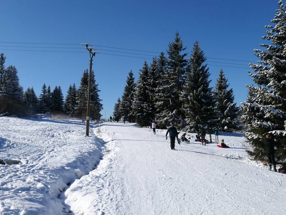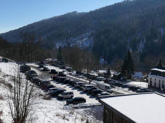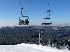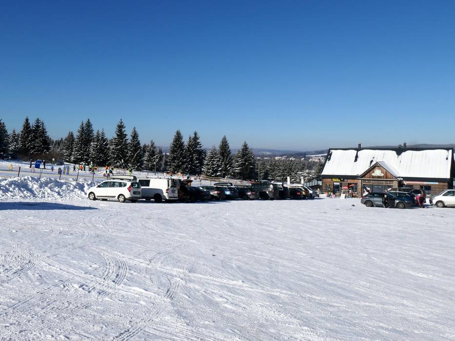 Plešivec (Pleßberg) is a prominent mountain (1,028 m) in the western Ore Mountains in the Czech Republic. The ski area around Plešivec starts about 15 km north of Karlovy Vary (Carlsbad) and about 3 km south of Abertamy. The German-Czech border is only about 12 km away at Johanngeorgenstadt and Oberwiesenthal. The ski area has two access points with free parking: in Pstruží at the chairlift or near Abertamy at the children's area. From the children's area, a footpath of about 300 meters leads to the chairlift. The drag lift directly in Abertamy has been decommissioned and there is no access point here.