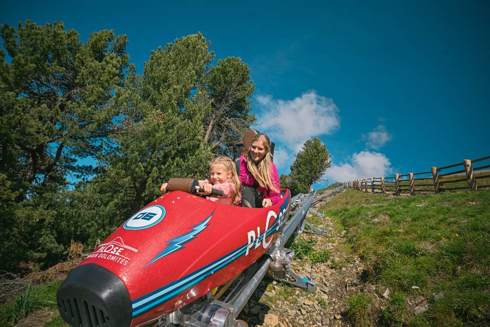 Experience pure action and excitement with the Plosebob. Safely positioned in closed bobsleds, you thunder downhill on a rail-guided track, climbing 147 metres in altitude. It’s up to you to decide whether you want to experience the “hero” ride with a launch catapult or whether you prefer to take it easy. In any case, the rapid curves provide the desired adrenaline kick. The start and finish are at the top station of the Plose cable car. The cable car can be used all year round. Foto@SOROBA2020/2021