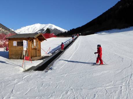 The practice area with conveyor belt is located right at the valley station in Ponte di Legno.