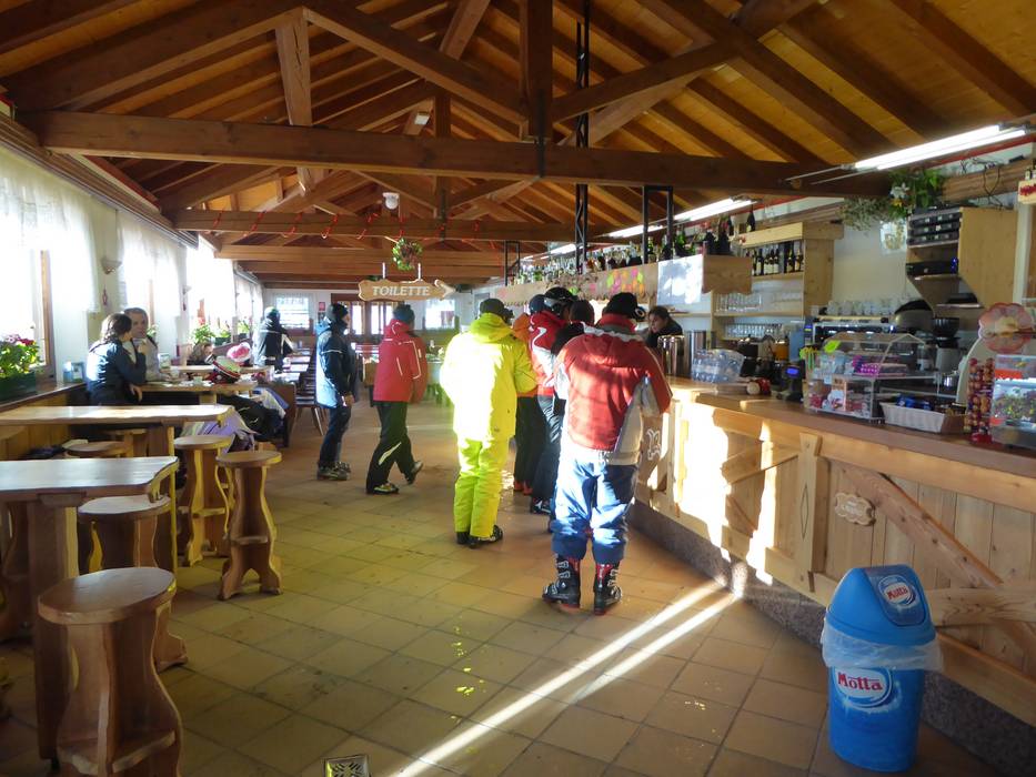 La Baracca is modern and features large panoramic windows. Here, you can stop by from late morning until après-ski. On the first floor, there is a serviced restaurant, while on the ground floor you'll find a self-service restaurant and a bar.