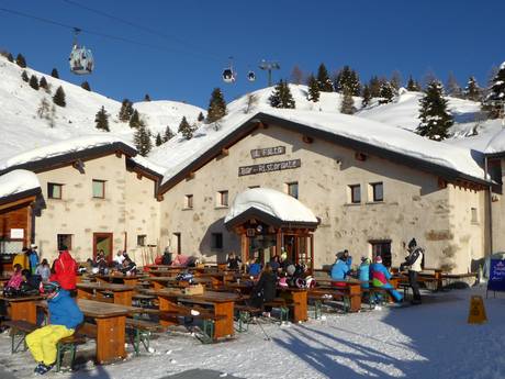 Throughout the entire ski area, typical Italian huts and restaurants are scattered. At all key points in the ski area, you will find places to stop for refreshments. The cuisine is mostly focused on regional specialties. Of course, you will also find sausages and goulash.