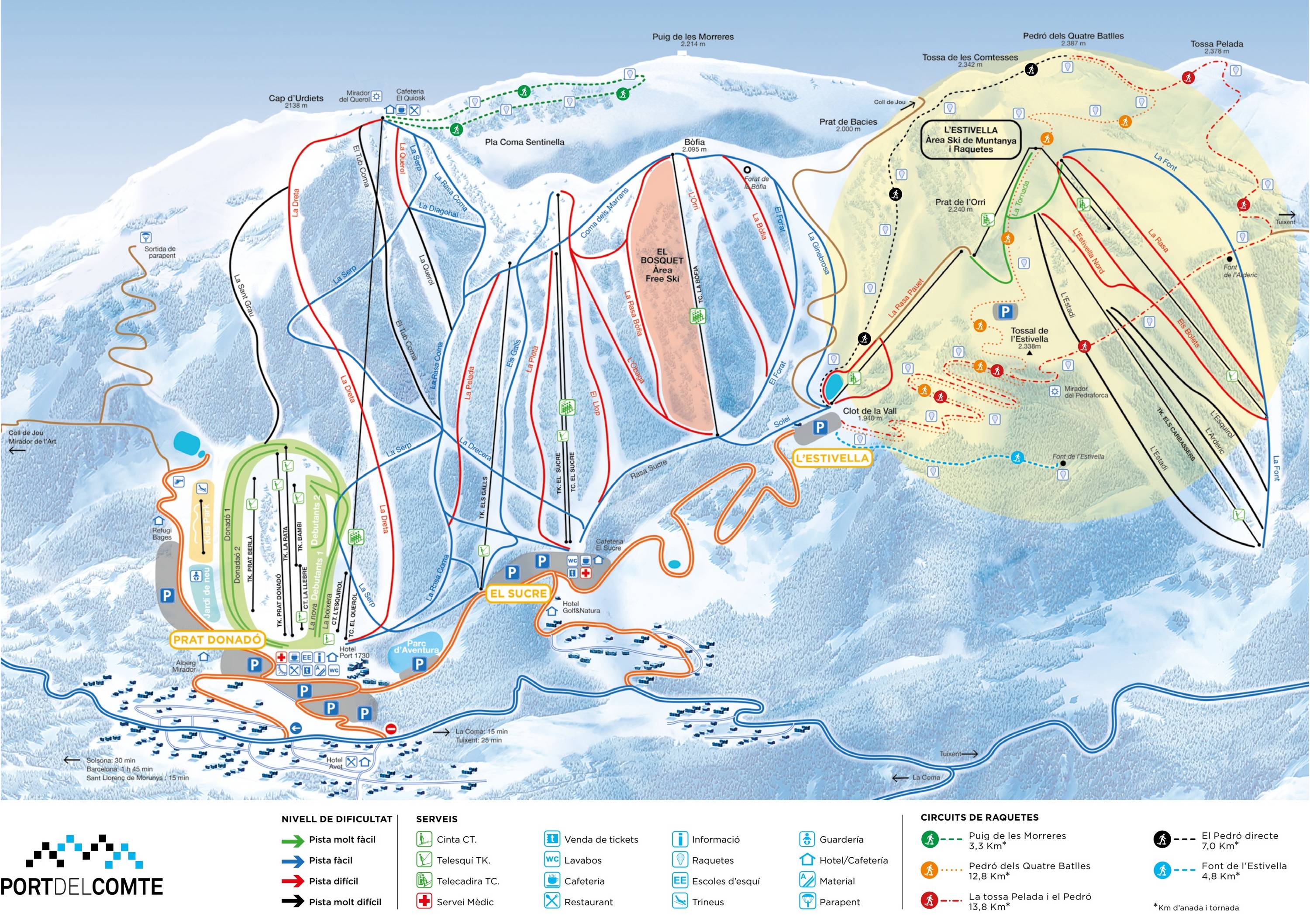 La Coma i la Pedra (12 km), Sant Llorenç de Morunys (16 km), Solsonès (31 km) Towns/villages at the ski resort