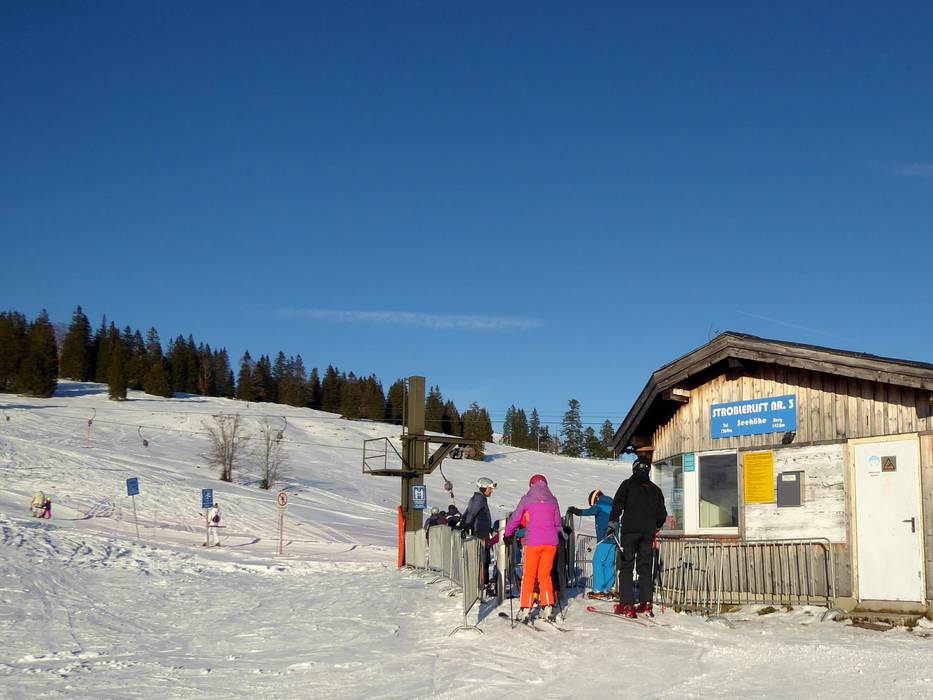 T-bar lift/platter/button lift at the ski resort Postalm am Wolfgangsee