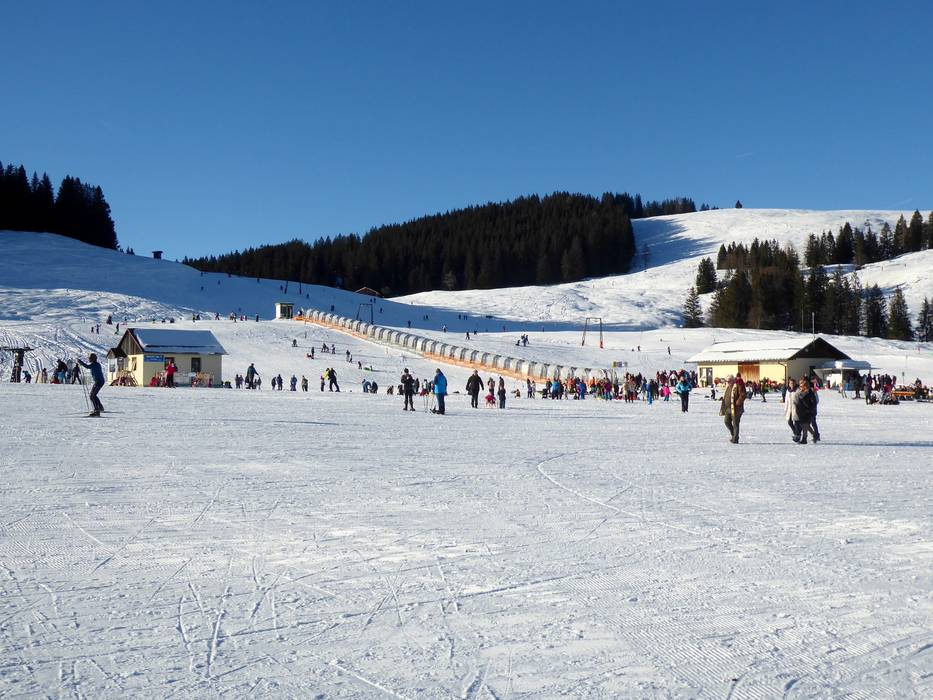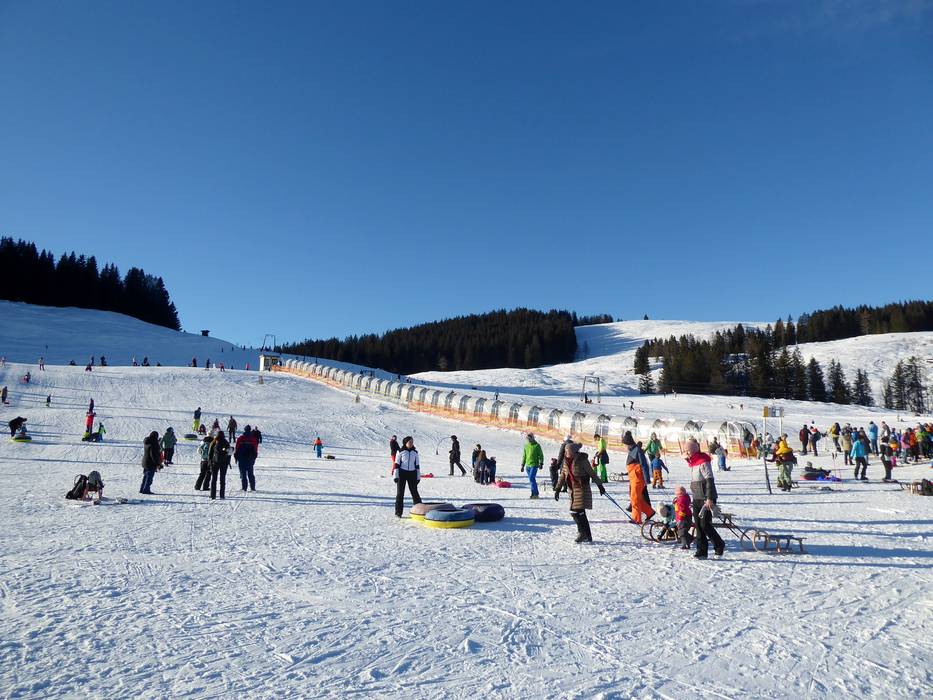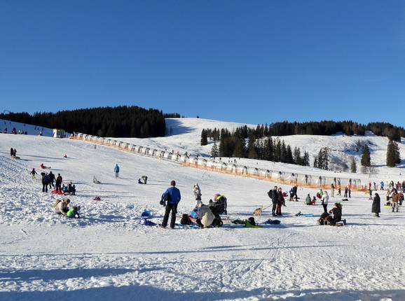 The covered magic carpet is a paradise for children and families. Here, little ones can practice their first turns or try a toboggan run.