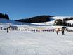 Families with children are very welcome at Winterpark Postalm. The clear infrastructure and easy slopes create a family-friendly atmosphere. The conveyor belt is perfect for practicing your first turns. The drag and platter lifts provide access to easy slopes. The local ski school operates the Kinderwiese Postalm.