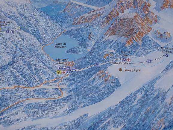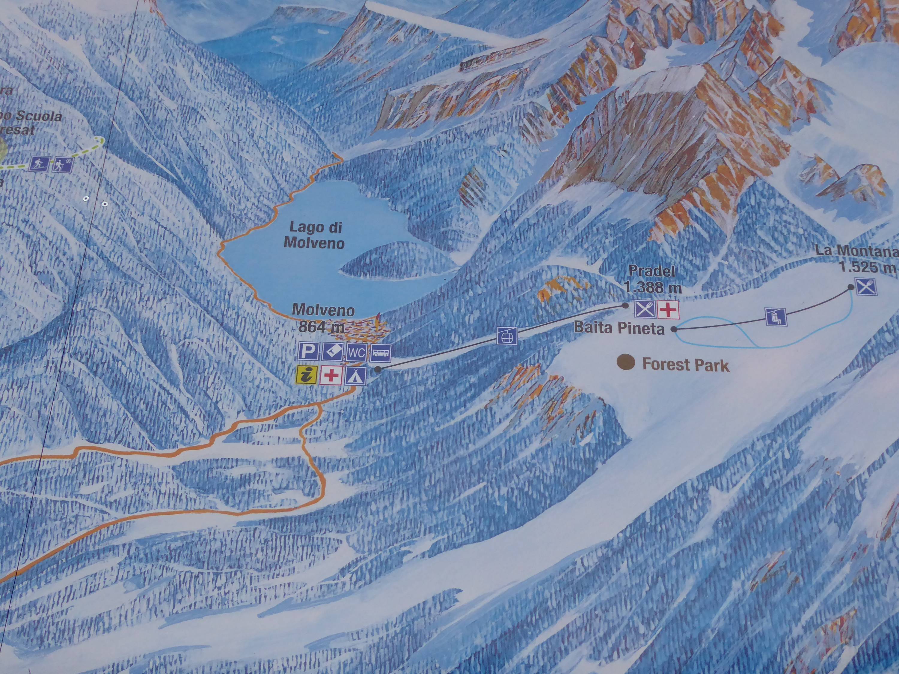Pradel (0.1 km), Molveno (0.3 km) Towns/villages at the ski resort