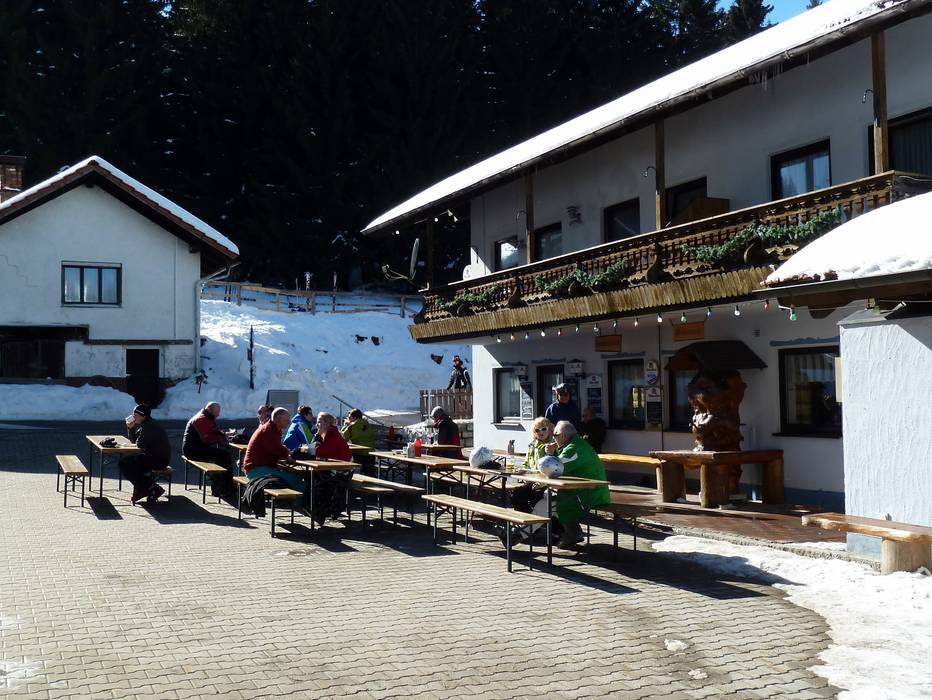 The mountain inn is known as a popular destination for winter hikers and skiers. In the family-run restaurant, you can look forward to Bavarian delicacies, oven-fresh cakes, and homemade Jagatee.
