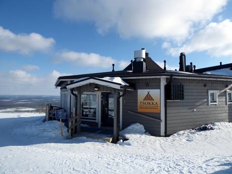 The highest mountain hut in the Pyhä ski area is located at the summit of Kultakero. It is an atmospheric restaurant in a traditional Lappish cabin. The large terrace offers a magnificent view over Lapland and, on clear days, even as far as Russia.