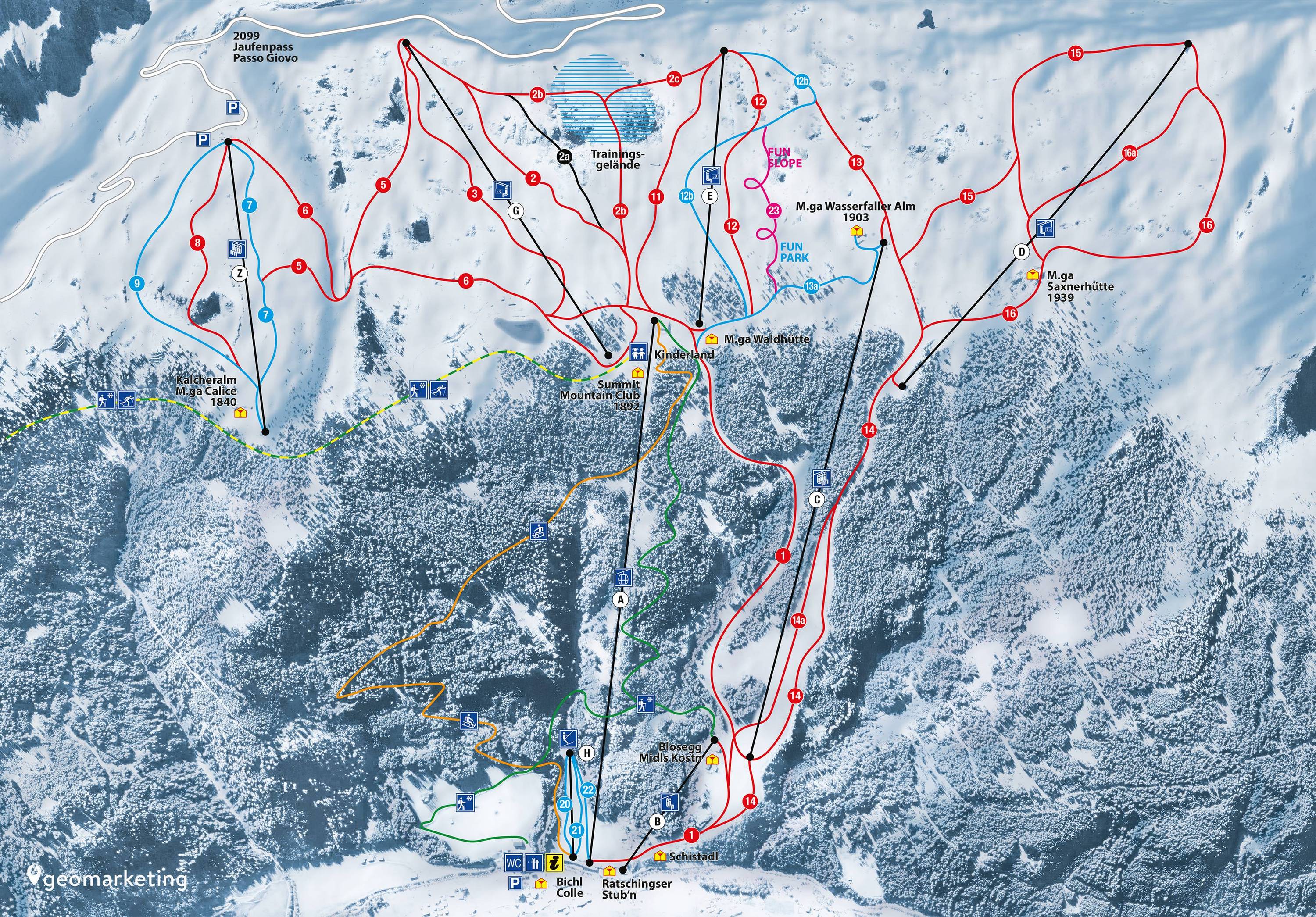 Bichl (Colle) (0.2 km), Innerratschings (Racines di Dentro) (1 km), Towns/villages at the ski resort
